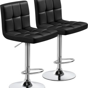 Homall Bar Stools Modern PU Leather Adjustable Swivel Barstools, Armless Hydraulic Kitchen Counter Bar Stool Extra Height Square Island Barstool with Back Set of 2 (Leather, Black)