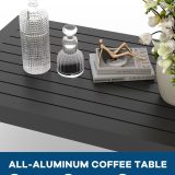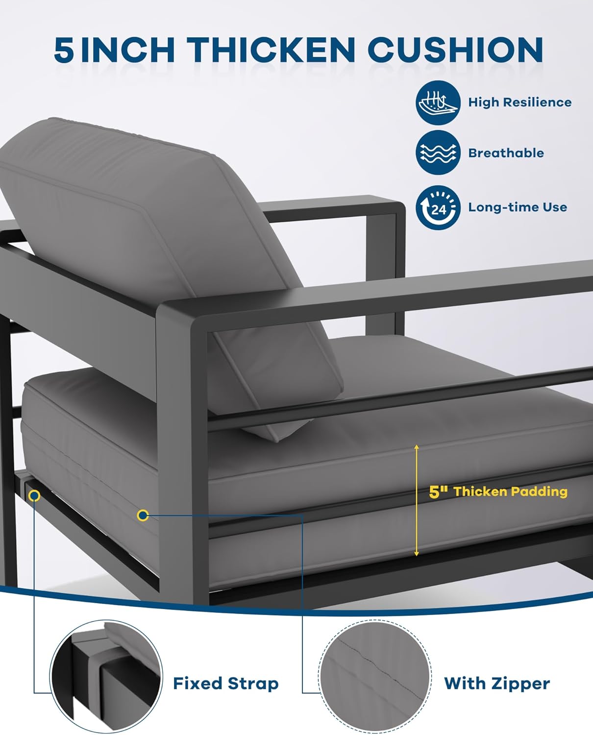 Crafted from durable aluminum, this patio furniture set is built to withstand the elements and provide long-lasting use. The set includes a coffee table, perfect for holding drinks, snacks, or decor while entertaining guests or enjoying a quiet evening outdoors.